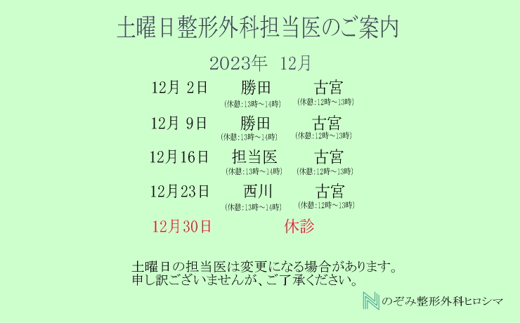 ※受付は、原則、各担当医の診療終了時間の30分前となります。