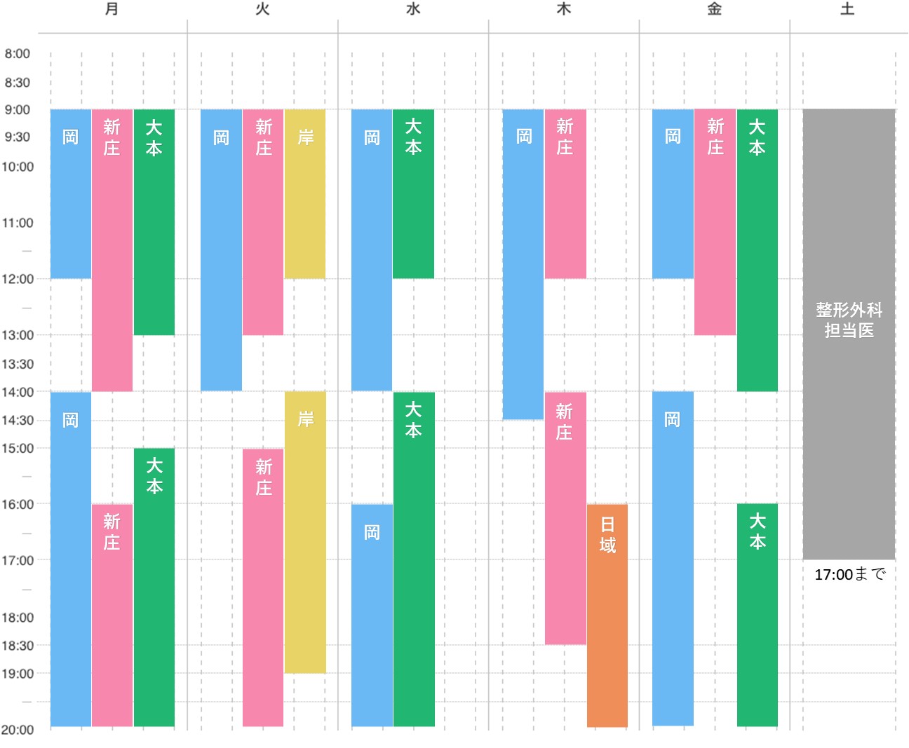 ・土曜日の担当医診療時間はお電話や院内掲示板またはホームページをご確認ください。