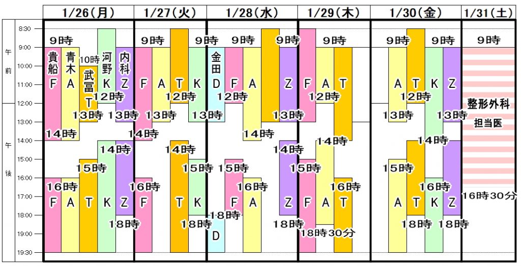 1月26日~31日の診療体制の変更のお知らせ