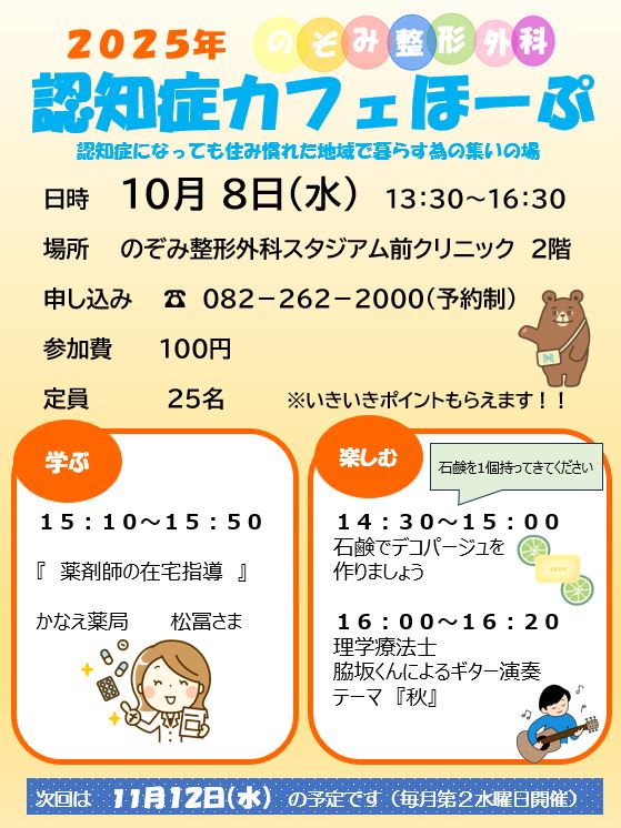 10月8日(水)認知症カフェほーぷ開催のお知らせ