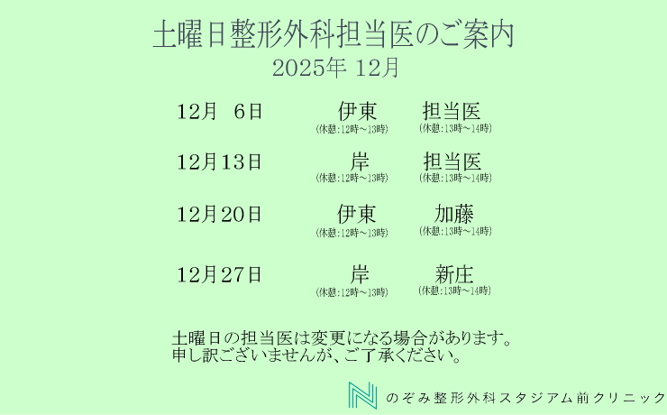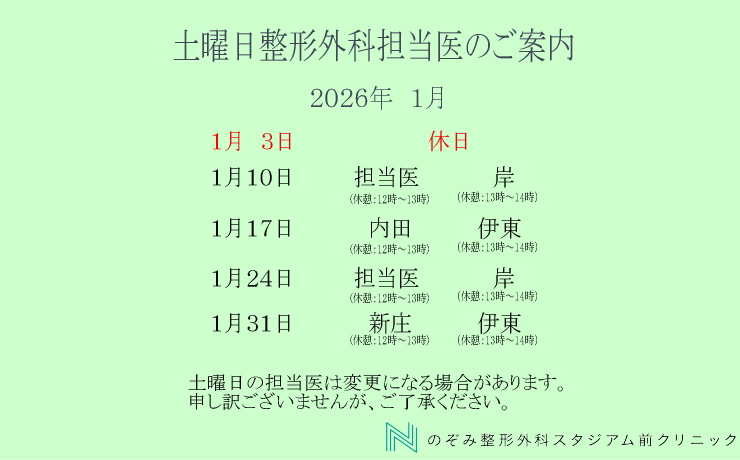 ※午前診療の受付は原則、初診・別の症状の方は各担当医の診療終了時間の30分前となります。再診の同症状の方は15分前となります。混雑状況によっては早めに受付が終了する可能性がありますので予めご了承ください。